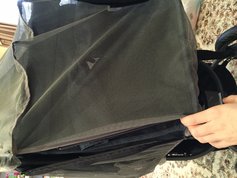 сетка, закрывающая спинку. Да страшненько, знаю) но мои бабушки гуляют с дитем в лесу! там комароов.. так что будет как в танке, ели что. Зато в ней можно раскрыть на проветривание заднюю стенку. Там хоть и есть сетка, но крупноячеистая, мошкам не преграда.