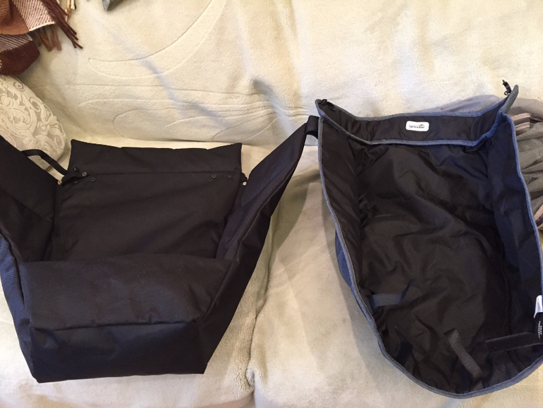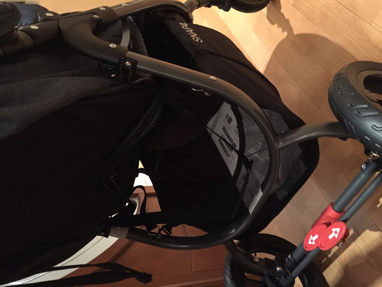 Минусы: в комплекте ничего нет), смотровое окошко на липучках- пришлось перешивать на магниты, в горизонтальном положении задняя стенка без магнитиков, поэтому пришлось нашить кнопочки, чтобы не было дырок, амортизации нет ( поэтому и раскошелилась на колеса с наддувом). после горизонтального положения при подъеме вверх на спинку находят складки, их нужно заправлять обратно за сидушку. Ручка не регулируется, но мне с ростом 166 см удобно, у мужа 183 тоже удобно