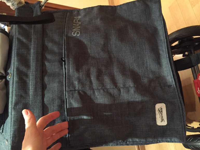 плюсы: приятная ткань, маневренный, вес моей коляски в этой ткани с надувными колесами 8.5 кг ( 6.5 весит снап в плащевке, 7.5 снап в ткани тейлормэд и плюс колеса 1 кг( 3 кг вес надувных минус 2 кг вес родных колес= 1кг), есть единая ручка с приятным покрытием ( не рожки!), большая корзина ( мак отдыхает), смотровое окошко, вентиляция задней стенки, высокий откидной с обеих сторон бампер, покрытый тканью на молнии, разъемные пятиточечные ремни, большой кап.Есть возможность докупить надувные колеса, правда цена забубенная. Размеры сидушки 33*87! см, подножка регулируется. Очень удобный и простой механизм сложения-подъема спинки, хоть и ремень. Тормоз обувь не портит, если нажимать боком ноги, то и не шумит сильно.