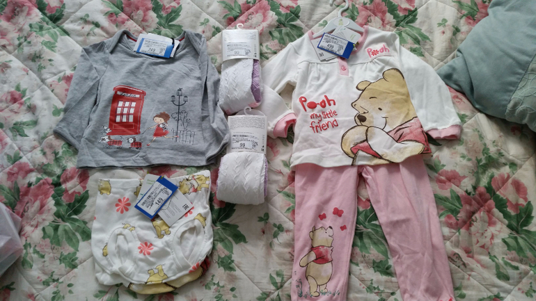 Колготы по 99р, пижама 499р 92 размер, трусы 2 пары 149р. И кофточка 249р. И пижамка 555р крокид с бабаду.