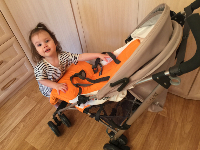 В качестве особенностей можно отметить довольно ощутимый завал спинки при минимальном угле наклона, но мы так всегда сидим - и в предыдущей коляске, и в автокресле, поэтому для нас так даже лучше. Нет бампера - но при таком завале он и не нужен, иначе ребёнку нужно было бы приподниматься, чтобы достать до него. Нет полностью горизонтального положения - но для дочери и максимальный наклон слишком большой, на улице мы предпочитаем спать полулёжа, в данной коляске это среднее положение (всего их 3).