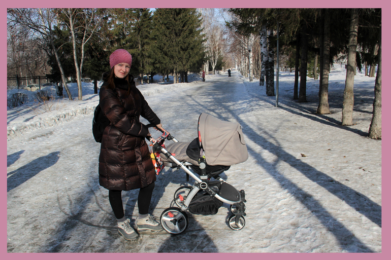 Раз уж начала я про весну-лето, то не могу не похвалить люльку! Когда "за бортом" температура приближается к +30, внутри люльки прохладно и комфортно! При том, что она черная! Мистика просто! Но мой младшенький даже не потел внутри. Летом колясочка показала себя отлично!