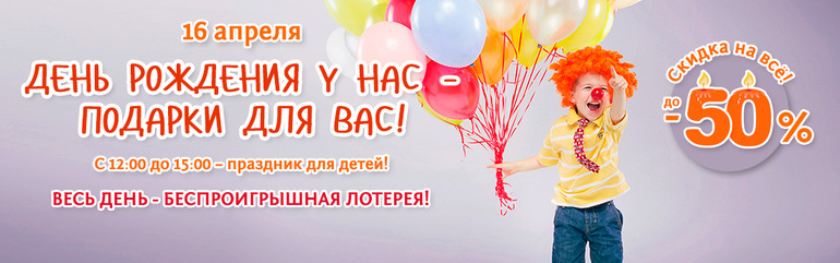 В субботу 16 апреля в Детском №1 на ул. Алабяна скидки на продукцию до 50% и беспроигрышная лотерея