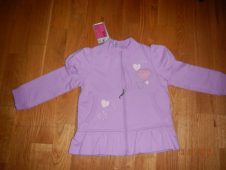 Размер 98, но какая то она маломерная что ли. Еще в магазине это поняла, но рискнула, т.к. не было большего размера, а мне толстовки эти оч понравились. Одной дочке хорошо, у нее рост 94см, а второй (она ростом 99см) - маловато.