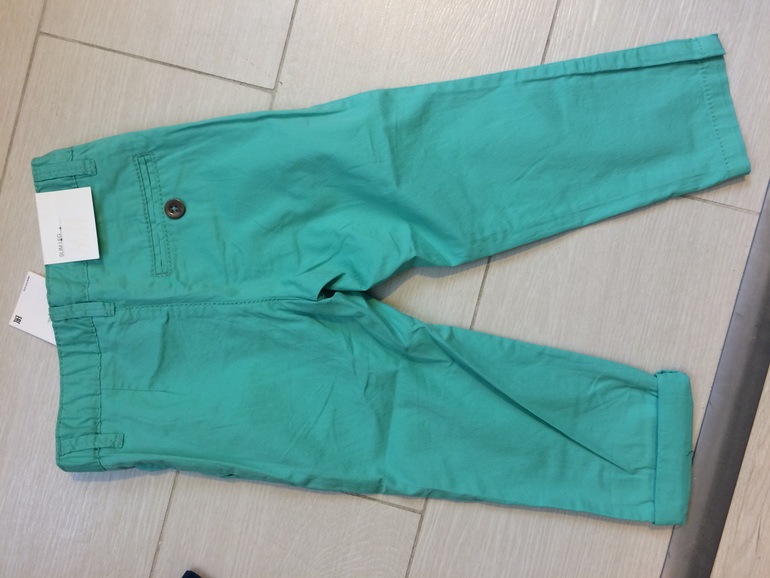Летние, тоненькие чинос. Размер 98. Но как-то коротки они... Я понимаю, что они, в принципе, должны быть до щиколотки ... Но не покидает чувство , что все- таки коротенькие какие-то.