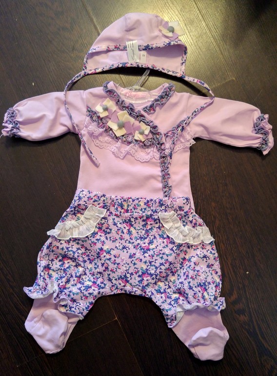 еще один милый костюмчик-тройка) ну, мимо сиреневого мне всегда было сложно пройти)))) взяла маленький размер, будем убивать всех своей неотразимой красотой в поликлинике) спасибо производителю - бодик полностью на кнопках, так люблю, чтобы не через голову!