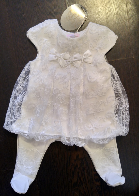 Это оно!!! платье мечты))) внутри нежнейший хлопок, снаружи воздушное кружево! пошив отличный, нет слов! к платью в комплекте прилагаются ползуны, с таким же чудесным кружавчиком!!! Оно позиционируется как платье для крестин, но это не наш вариант, потому оно будет платье для фотосессий и походов с родителями в ресторан)) не все же нашей звезде ходить в обносках сына?