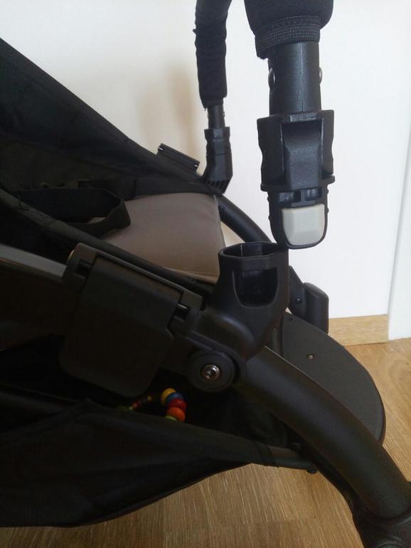 Я его просто поставила. Ему не дает упасть подножка коляски и ещё так получилось, что у автокресла есть какие-то бугорки, которые идеально встали между боковым бампером коляски. Короче люлька не закреплена, она просто по габаритам хорошо вместилась в коляску