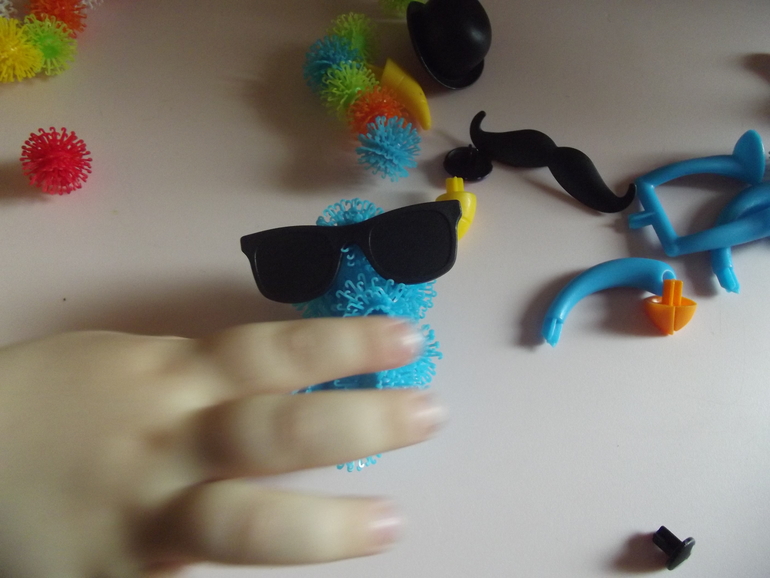 В наборе 370 шариков , 8 разных цветов . Плюс 36 аксессуаров - глаза , крылья , шляпки , ножки ...