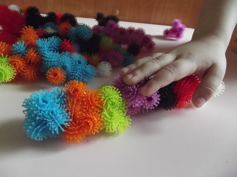 За счет крючков шарики легко соединяются между собой в различных вариациях .