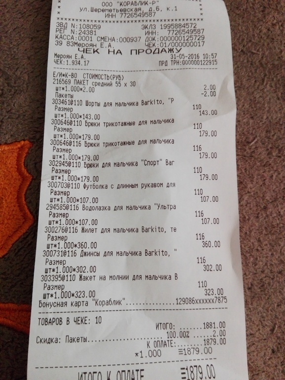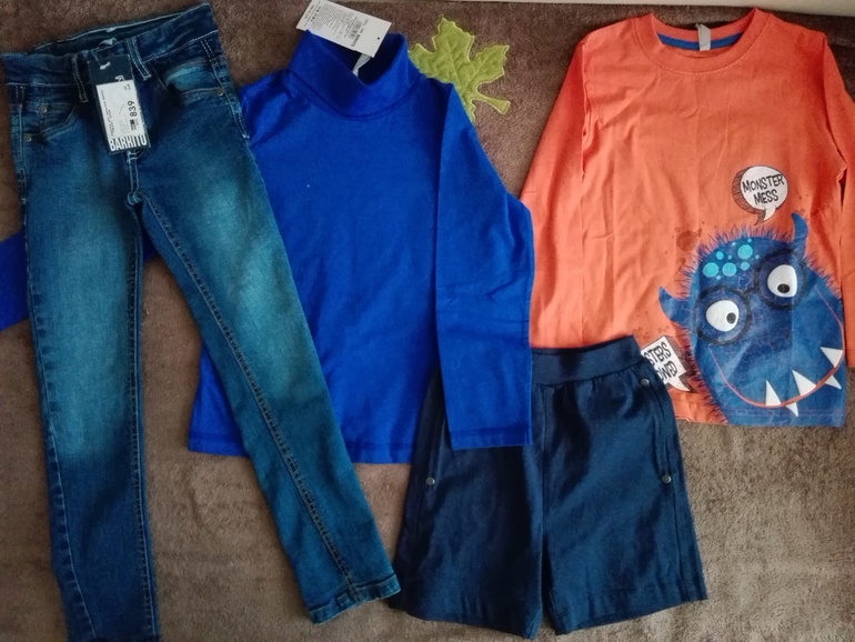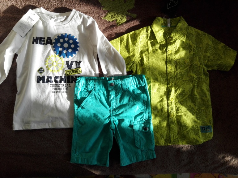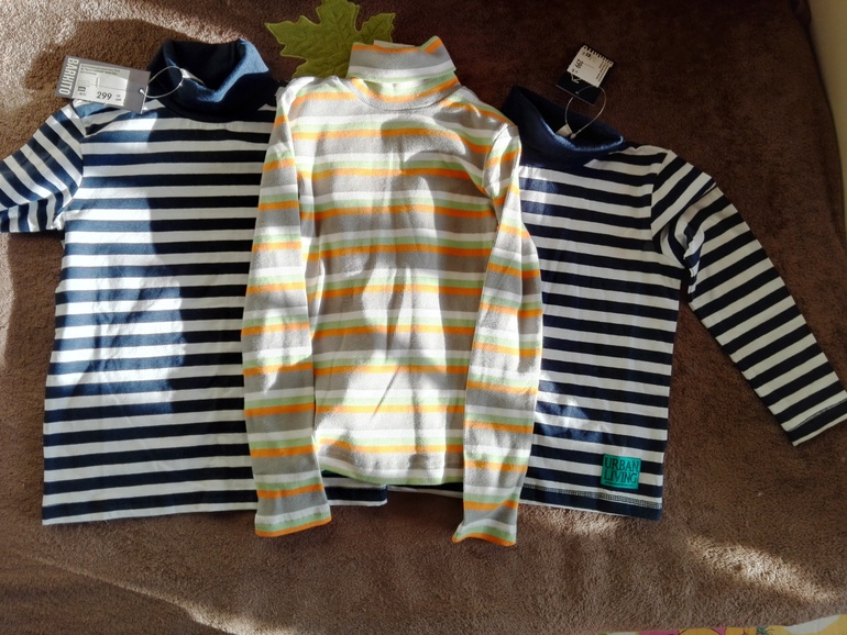Не очень понравилось качество оранжевого лонга, слишком тонкий. Парочка серых шорт тоже тонковаты, водолазка полосатая оранжевая тоже не уверена, что переживет много стирок, хотя кто знает, надо пробовать. Осталась довольна своим походом) все это планирую в сад одевать, за такие деньги просто песня))