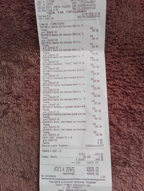 Племяшке купила, забыла вставить перед чеком. Все это обошлось примерно в 4700.