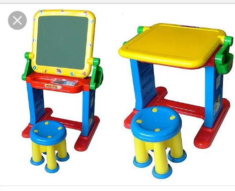 быстро из строя вышла доска,сама крышка в сложенном виде не прямая,не ровная,не очень удобно,рабочее место маловато для моей двухлетки,мы на дачу отвезли,а себе взяли маммут прямоугольный со стульчиком и мольберт,очень рады и довольны!места много и для порисовать и для полепить!