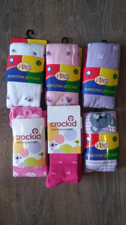 далее колготки 6шт, носочки 5шт, трусики 5 шт +2шт и пару наборов майка+трусы, не уверена что майки пригодятся поэтому пока 2 шт