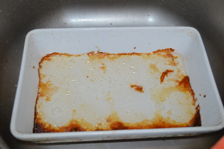 В первый день тестирования "жирной" посуды не было :) На следующий день отмывала форму из-под куриных котлет. Не смотря на то, что форма была холодная, да и мыла я холодной водой в виду отсутствия горячей, все отмылось легко.