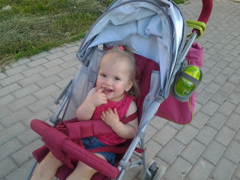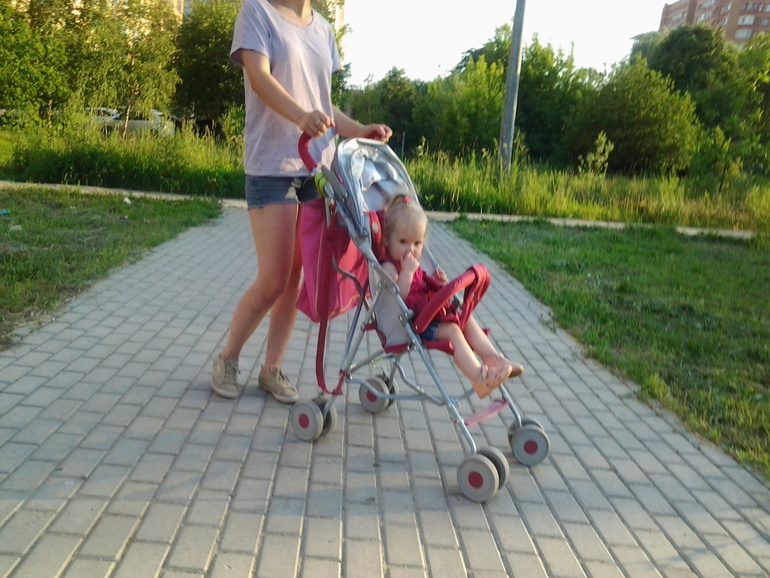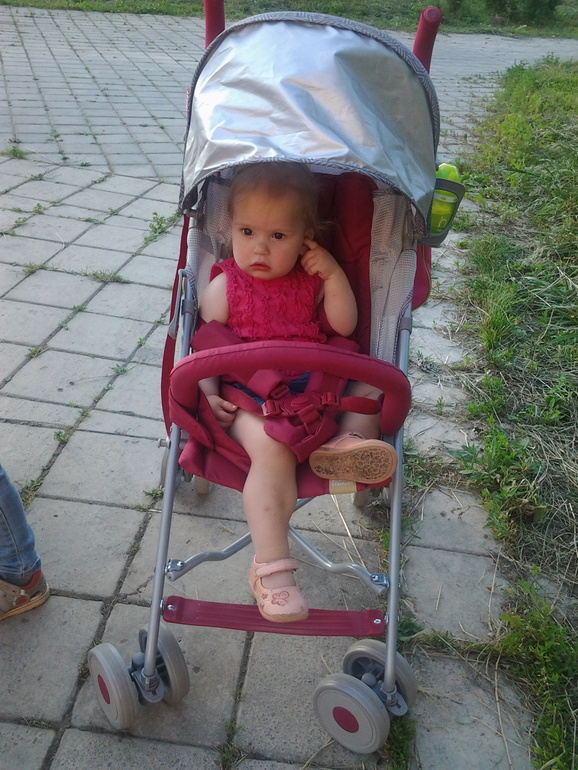 Кстати сиденье вполне просторное для 1.6 летнего ребенка. Трехлетний и четырехлетний тоже поместились, но так как коляска рассчитана до 15 кг, а мы уже 17, то ехать так конечно тяжело, может и не выдержать наверное таких нагрузок. Но думаю Кристине подойдет еще и на следующее лето. Сиденье короткое, нет удлинителя под ножки, но нам особо не мешает это.