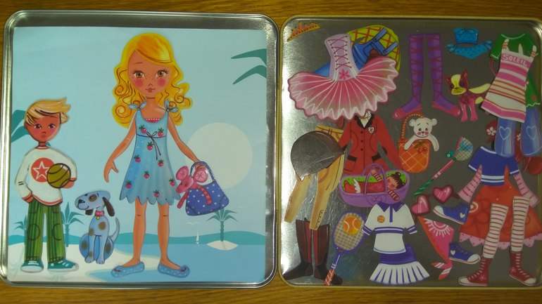 Магнитики очень плотные и крепкие,имеется три фона для переодевания