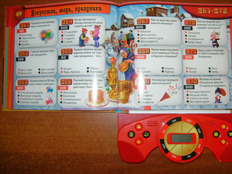 Книга выбирает вопросы самостоятельно,каждый правильно угаданный вопрос приносит балл