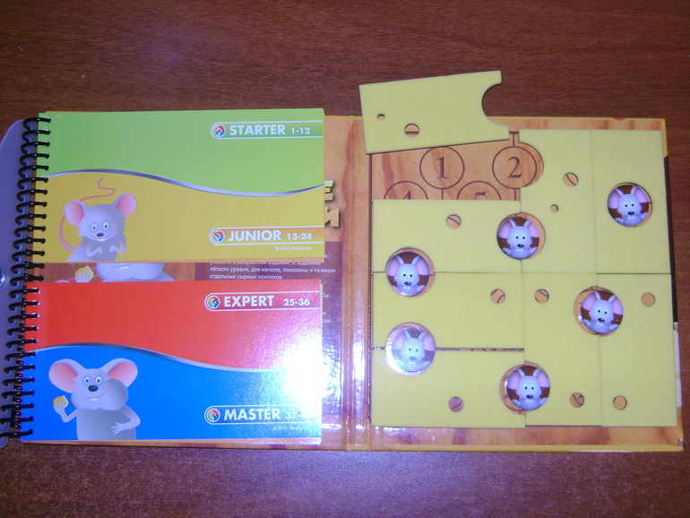 Игра Сырные лазейки похожа на головоломку про ферму,при помощи буклета с заданием расставляем мышек и при помощи разных кусочков сыра прячем их