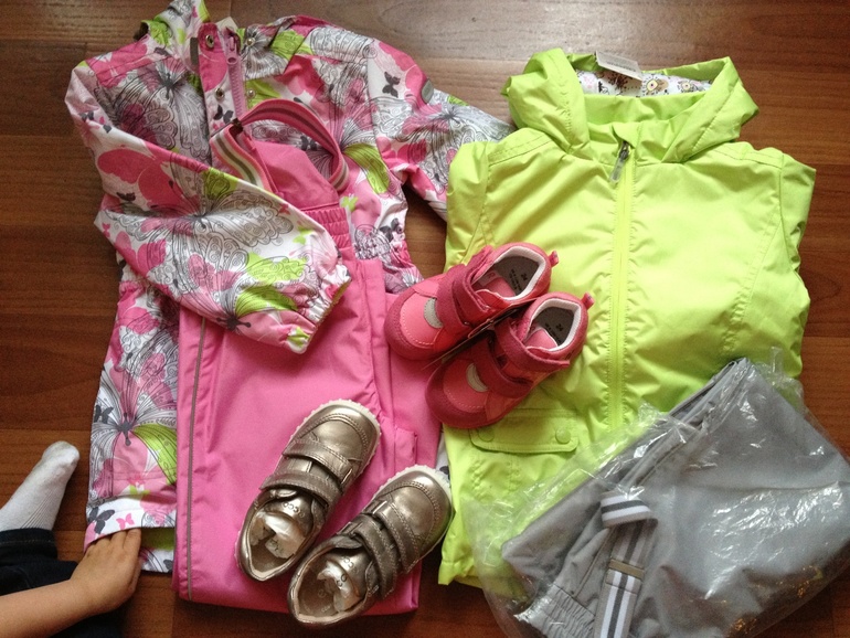 У нас были типа как вторые, серебристые с розовыми шнурками. Носили их летом, когда дождик прошел, прохладно. С осенним комбезом как писали ниже - неудобно, штрипки не держатся, нога оголяется до колготок между комбезом и кроссовками.