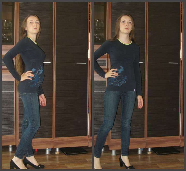 Мне больше понравилась, как сидит с животом. Без него какая-то балахонистая, но носить можно.