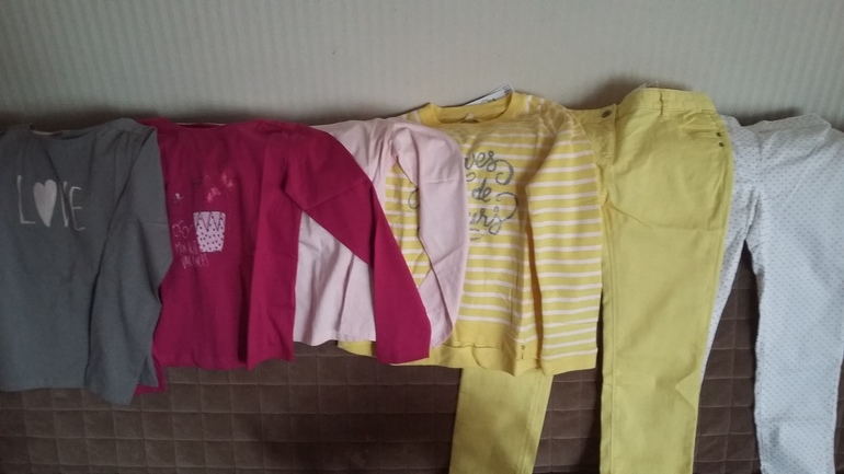 Толстовка желтая в полоску 10 л.,джинсы желтые 12 л.
