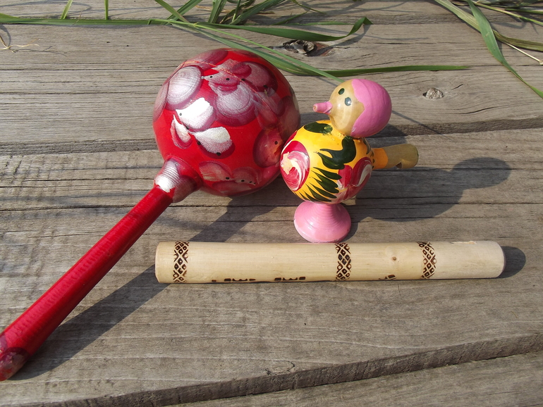Особое внимание советую уделить музыкальным инструментам - свистулькам,дудочкам,погремушкам и губным гармошкам.
