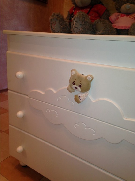 У нас была такого типа полочка. Удобно, на крючки вешали костюмчики. Но у нас они висели над пеленальным столиком и однажды ребенку на голову тюбик с кремом упал, пока пеленала- поставила неудачно. Короче, если полочки, то над комодом, а не над пеленальным столиком!