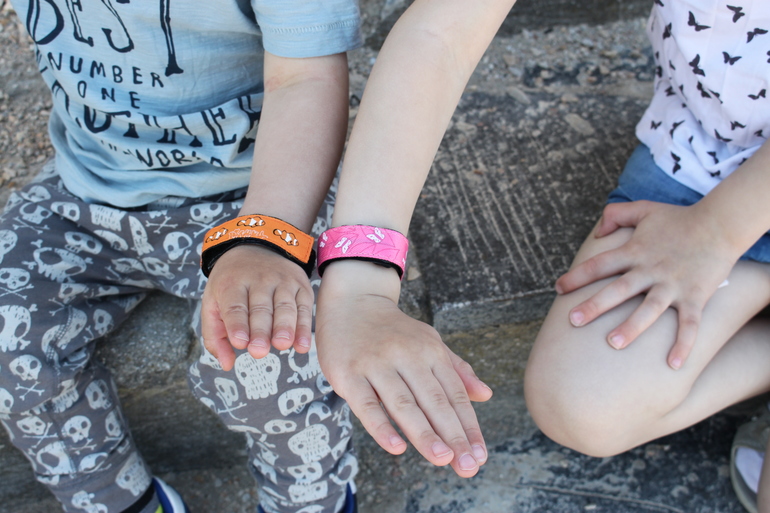 Внутри этих браслетиков лежит пластиковый вкладыш, на котором можно написать данные родителей и прочую важную информацию.