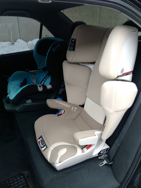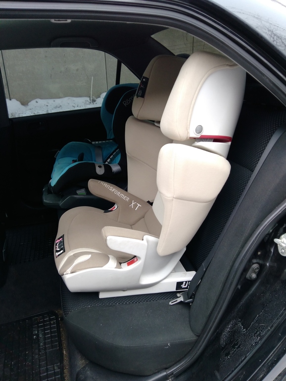 Но есть и минусы. Кресло качается при поворотах. Очень жаль, что у них нет крючка за подголовником, как в ромере, меньшем по возрасту. Лежачее положение тоже не очень. На фото показала, как в лежачем положении от кресла машины и автокресла 10 см пространства появляется. Когда мы ездили на море, я под сидение подкладывала вещи, что бы подголовник упирался в кресло машины. На ходу, если ребёнок уснул, придётся выйти и сделать лежачее положение и поправить ремень,т.к. он натянется, на ходу не выйдет. В обычном положении у меня ребёнок отлично спит. Сейчас хотим ещё покупать кресло, и я свой выбор остановила на Трансформер Т. Не вижу смысла переплачивать за ХТ.