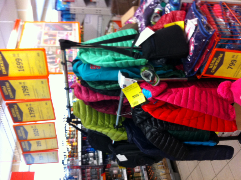 Распродажи. Скидки. Акции.Если кому то ещё надо то в Дикси на проспекте Мира 196 есть : целая куча маленьких сумочек,чуть меньше дорожных сумок, несколько штук рюкзаков! Также приличное количество тонких пуховиков - на взрослых и детей( детские примерно на вскидку с 92 р) может есть меньше незнаю не смотрела)))! Так же женские спортивные костюмы по 800р - много цветов- тёплые!были мужские и женские футболки, детские шапки, и видела один набор майка шорты для мальчика!