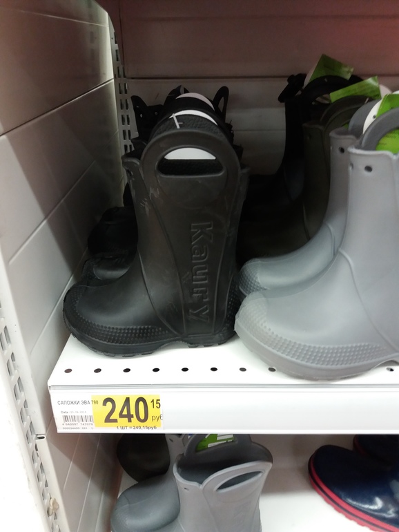 Адекватная цена для резиновых сапог - до 500 рэ. Лемиго в Мазе больше 1,5 тыр, про Кроксы вообще молчу. Но меня Кроксы спасают - взрослые, другие (не брендовые) себе бы не купила - разве что лягушки LLBean))