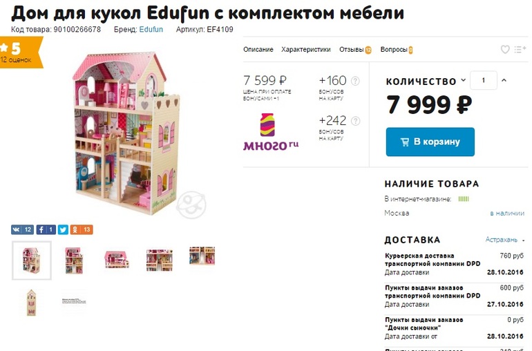 Распродажи. Скидки. Акции.Отдам лишний заказ в г.Астрахань. Домик для куклы с распродажи в дочки сыночки со скидкой 50%. Цена 4000 и 3000 соответственно.