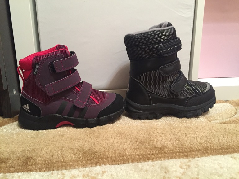 Что имеем? Двое мембранных ботинок адидас (потоньше как мне кажется на зиму не пойдут) и лэсси тэк (наощупь очень толстые и теплые) мембрана планируется на погоду слякотную то есть до -5 примерно. Минус адидасов в том, что они низкие, штаны у нас в этом году без штрипок! А минус лэсси на мой взгляд в том, что они слишком теплые доя темп около ноля. Потом второе: каваты. Есть две модели. Тут проблема в том, что у нас очень узкая и неподьемистая нога. Часто нога очень болтается, ребенку неудоьно. К тому же у нас вальгус, желательно ногу фиксировать в пятке. У каватов модель с липучкой в голенище можно утянуть, но в подьеме они больше как оказалось(видно на фото), нога там сильно болтается. Плюс недостаток модели с липучкой : они скрипят при хотьбе, т к трется кожа дубовая друг об друга(на язычке, но не утягивать если то с нас спадают) еще они низковаты конечно для зимы и штанины без штрипки;(( Сапожками моделька нравится тем что выше, и в подьеме получше! Нов голенище оч широкие(как куома) у нас две ноги туда влезут.. Вот вопрос : стоит ли вообще каваты оставлять? Их вроде очень хвалят... Если не стоит из за неудобства, то что тогда взять на морозы ребенку чтоб по ноге сидело хорошо? Или оставить все таки каваты? И что выбрать из мембранных? Вобщем митуация такая, хочу советов. Хочется хорошую добротную теплую и хорошо сидящую оьувь!!! Что у вас на зиму? Делитесь! Засматриваюсь еще на валенки! Сейчас есть можельки которые в голенище узеие или можно утянуть. Есть ли смысл брать валенки? Какие минусы у них(котофей, филипок напр.)?