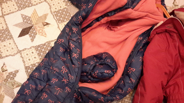 В красном(из Декатлона) внук в прошлом году ездил в Сочи - кататься на лыжах. Температура в горах была до - 10. Ему было тепло. А на розовой подкладке - это из Ашана. У внучки оттуда куртки и жилетки с рождения. Надеваю до 0. При минусе мне кажется уже прохладно