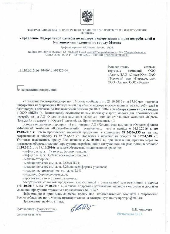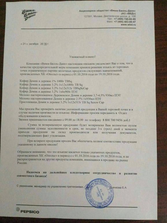 Добрый день всем! Решила поделиться полученной информацией : "Сейчас было совещание: в молочной продукции Вимм-Биль-Данн нашли вирус Ящура,произведённая начиная с 11 октября,вся продукция отзывается с продажи и уничтожается. Бренды компании: домик в деревне,агуша,имунелле,сыр ламбер,весёлый молочник,чудо,кубанская буренка. Не покупайте!!! Все выкиньте! Совещание было с участием Роспотребнадзора!
