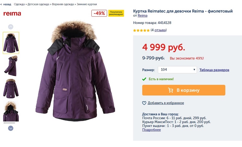 Распродажи. Скидки. Акции.Куртака Reimatec только 104 рр! Можно найти купон на 400/500 руб и сделать кешбек (до 800 руб) - цена отличная получается!