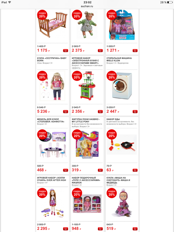Это у них акция - каждый день скидка 20% на новую категорию товаров, завтра на телефонию и диски (ашан) и молочные продукты (атак!) будет. Сегодня - игрушки, это во всех Аланах и интернет-магазине.