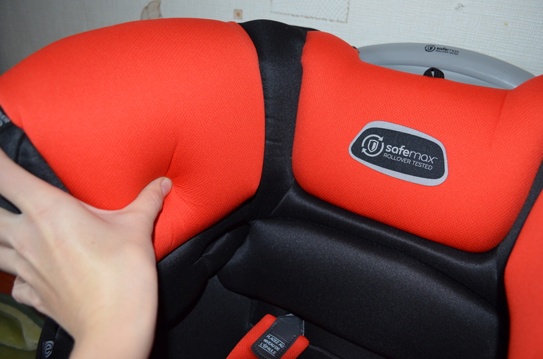 Представляем переворот: сначала бедро упирается в борт, потом вверх ногами плечи упираются в большой подголовник, везде мягко, везде гасится удар. В бортах и подголовнике "пенопласт", основную мягкость по телу дает чехол, очень "пухлый", рассчитан на 500 стирок.
