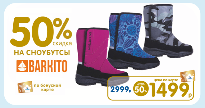 Детская обувьДевочки, доброе утро и хорошего дня!!!!!!!!!!!! Подскажите пожалуйста, сейчас в Кораблике не плохая акция идет на Сноутбутсы детские Баркито 1500р.,зима, может кто-нибудь такие брал, как они??? Теплые, промокают или нет, и тд...??? За ранее огромное спасибо!!!