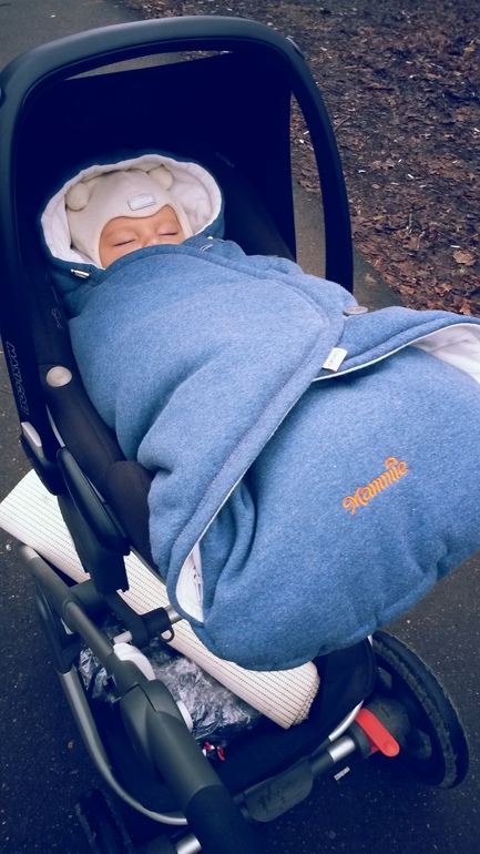 Не хочется малыша из люльки выдергивать, когда выхожу. Мне старшего со школы забирать ездить. Планировала люльку на базу от коляски и вперед. Чтоб не будить переодеваниями. А У Вас Керри какого размера?