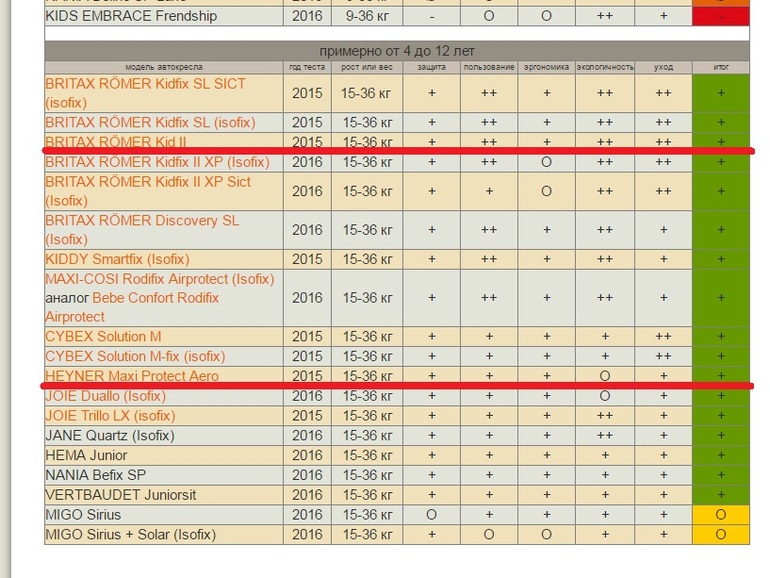Я была удивлена хорошей оценкой Heyner Aero. Дело в том, что это кресло маломерка и для детей весовой группы 3 используется как бустер. Все кресла, которые могут использоваться как бустер имеют плохие оценки на ADAC