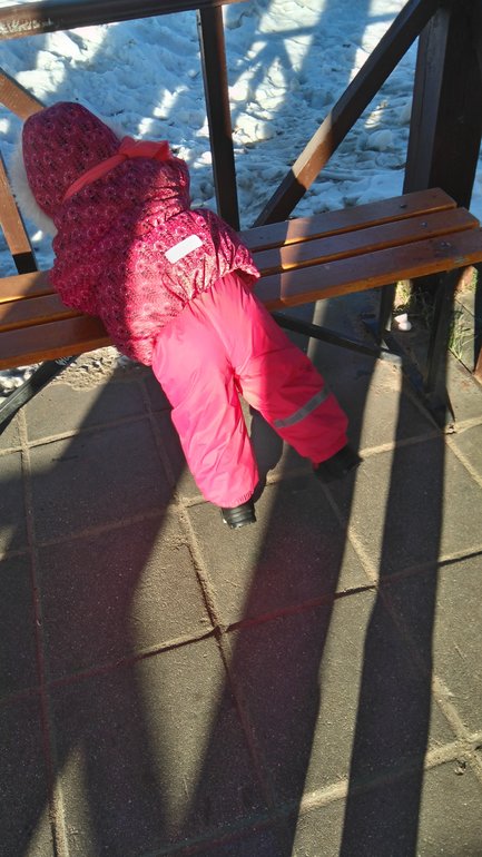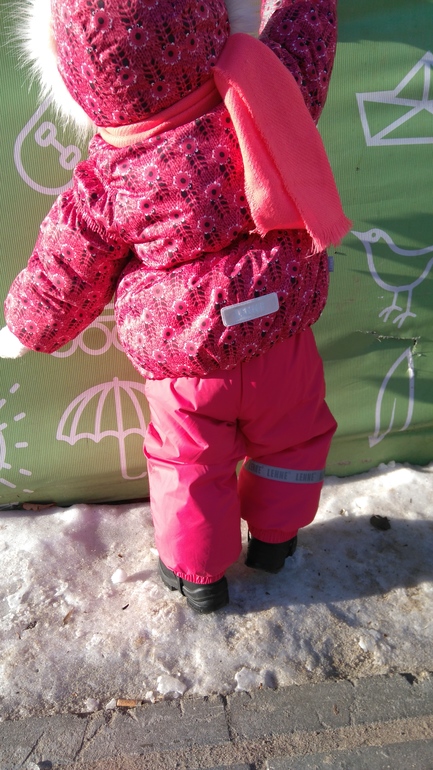 Он на всех так сидит. Поэтому я продаю свой - насмотрелась на площадках. Это особенность курток Керри - резинка снизу - и куртка задирается. А штаны холодные и дурацкие. Больше такой Керри не куплю. Купите слитник, любой, для прогулок - в таком Керри не слишком тепло. Либо полукомбинезон нормальный, теплый.