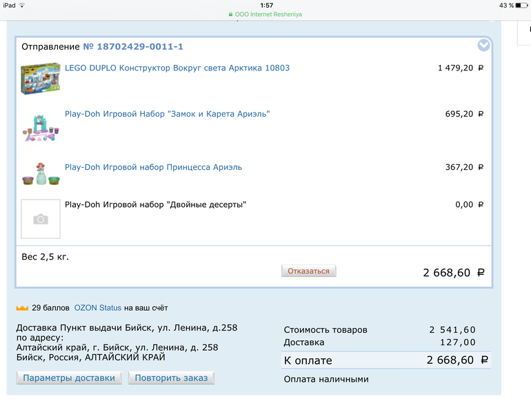 у меня в пункт самовывоза 69рэ) я хапаю все подряд) ну не могу удержаться, скидки же! не пропадет точно, у нас все знакомые детки старше, пригодиться все "добро" на подарки)) там еще акция на игры Бондибон, третья игра за 1 рубль. тоже купила, на вырост, будем вместе играть))) игры очень классные!