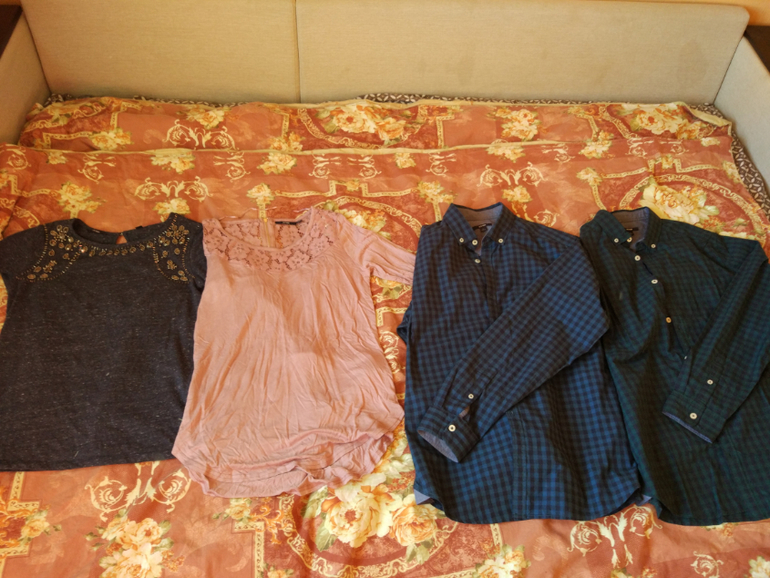 Мужские рубашки по 260р, женские кофты тоже по 200.