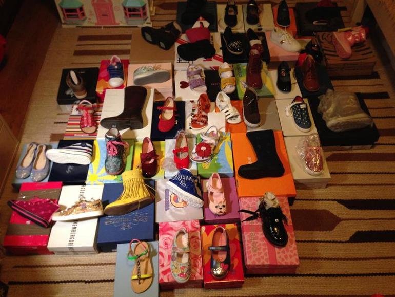 Я на коробку кладу обувь и фоткаю. В ряд кладу один размер. Либо записываю,либо запоминаю какой это ряд по размеру. В шкаф далеко убираю все то,что большое,а ближе то,что будем в скором будущем носить.