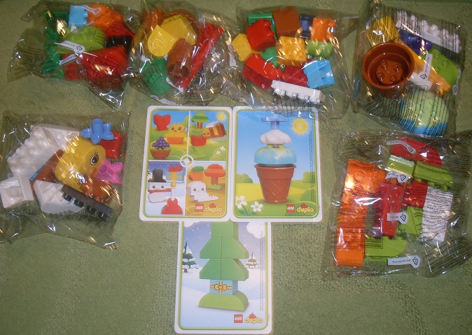 Набор состоит из 70 деталей, что для наборов Лего Дупло не мало. Кубики мы использвуем для строительства домиков и различных построек. Этот набор не даром назван "Времена года", с помощью деталей этого конструктора можно охватить все времена года.