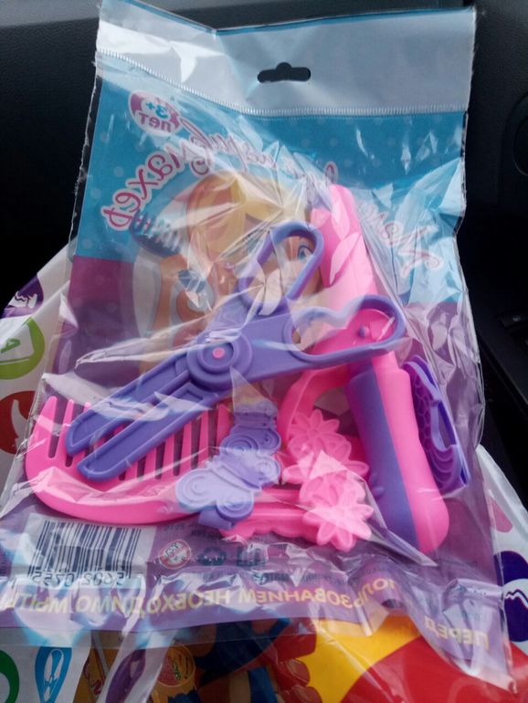 Есть бритва. расческа-массажная, зеркало с ручкой, фен.... Итого 7 предметов купных + 9 заколок.