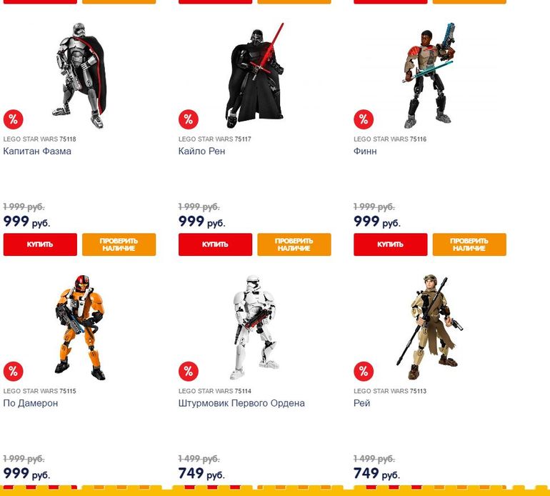 Звездные войны в ДМ были недавно со скидкой 50%,но там цена была лучше!Я своему набрала аж на 15000 почти со скидкой через интернет магазин,а в мир кубиков(лего) эти наборы без скидок мне бы около 38000 обошлись.