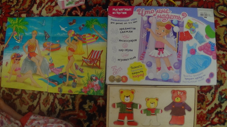 ИгрушкиПодскажите, пожалуйста, игру для девочки типа одевать разную одежду, на голову, обувь, можно прически и даже разные головы. Можно просто вкладывать (у нас есть мишки фанерные голова, туловище, ноги), можно на липучках (где-то видело но страшно нарисовано), можно наклейки (но сегодня взяла из моего детства журнал с наклейками, очень понравился, но через час перестали клеиться), еще на магнитной доске одеваем девочку, правда доской мы не пользуемся, то есть считай просто. Что можно посмотреть, хорошо нарисованное, по этому принципу. Просто бумажных кукол рано. Ребенку 2.10.